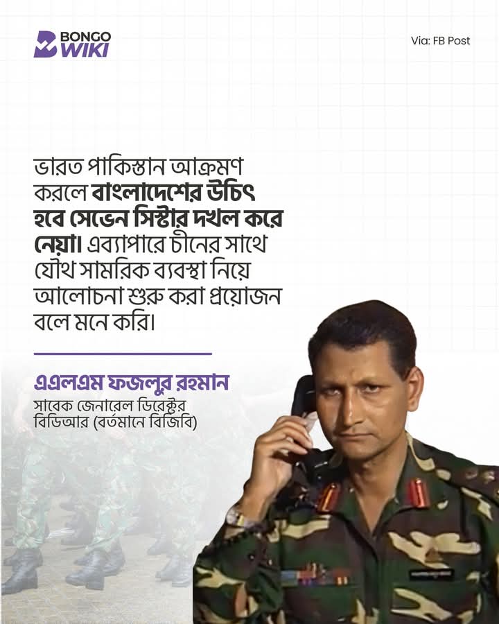 সম্প্রতি বাংলাদেশের রাজনৈতিক বিশ্লেষক ও মুসলিম অধিকারকর্মী Alm Fazlur Rahman তার একটি বিবৃতিতে বিস্ফোরক মন্তব্য করেছেন, যেখানে তিনি বলেছেন, “ভারত যদি পাকিস্তান আক্রমণ করে, তবে বাংলাদেশের উচিত হবে উত্তর-পূর্ব ভারতের সাত রাজ্য দখল করে নেওয়া এবং এ বিষয়ে চীনের সাথে যৌথ সামরিক প্রস্তুতি গ্রহণ করা।” তার এই মন্তব্য দেশের রাজনৈতিক অঙ্গনে এবং সামাজিক মাধ্যমে তীব্র আলোচনা ও বিতর্কের জন্ম দিয়েছে।