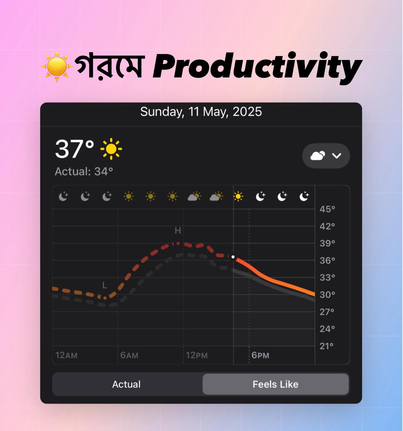 দুপুর ১টা থেকে ৪টা: সবচেয়ে গরম সময়। এই সময় কাজ করার চেষ্টা করলে Productivity কমে যায়।